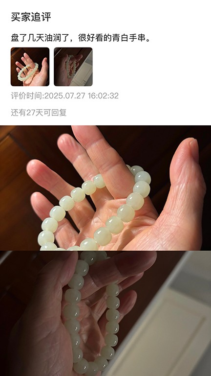 感谢顾客的返图,期待更多朋友加入返图行列,秀出您与玉苏周和田玉的独特故事,让这份温润之美传递得更远!